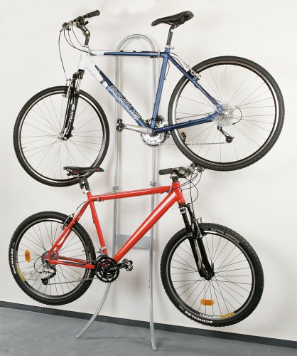 Auf dem Fahrradhalter DUO können zwei Fahrräder auf kleinstem Raum in Keller, Garage oder der Wohnung geparkt werden und sind jederzeit schnell wieder abnehmbar aufbewahrt. Ob Mountainbike, Rennrad oder City-Bike - der DUO Fahrradständer ist aufgrund der variabel einstellbaren Haken für alle Fahrradtypen und Rahmengrößen geeignet. Die Gummibeschichtung der Haken bietet maximalen Lackschutz für die Fahrräder. Der Fahrradhalter wird ? ohne Schrauben und Bohren ? einfach an die Wand angelehnt. Seine Tragkraft beträgt bis 44 kg.
